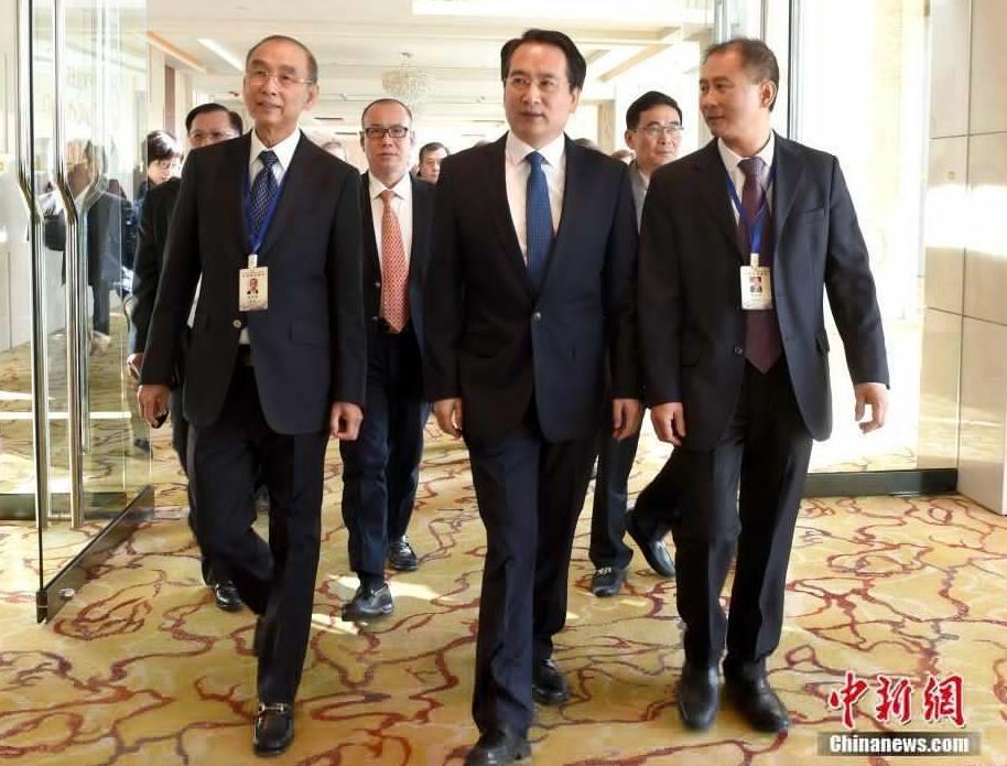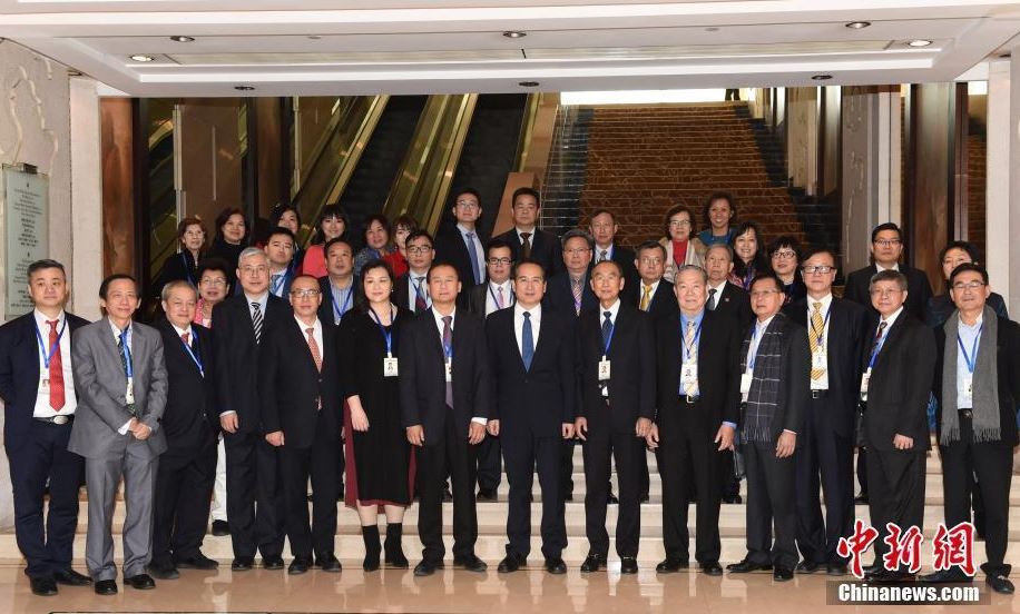 2月23日,中国国务院侨办副主任谭天星在北京会见美国潮商总会访问团。中新社记者 张勤 摄