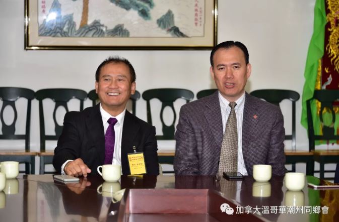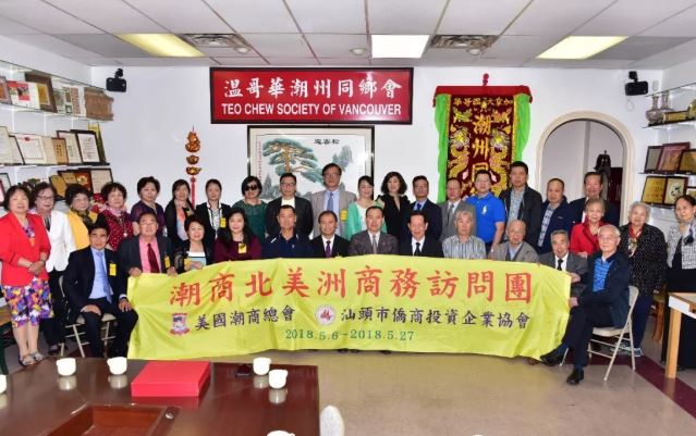2018年5月25日下午,由美國潮商總會、汕頭市僑商投資企業協會組成的潮商北美洲商務訪問團一行在美國潮商總會主席團主席陳育昭的率領下抵達溫哥華並到我會進行訪問交流,受到我會會長馮汝潔及一眾會領導的熱情接待。