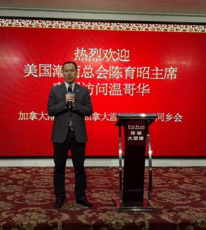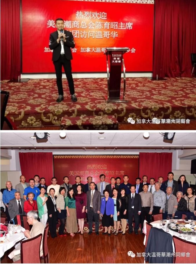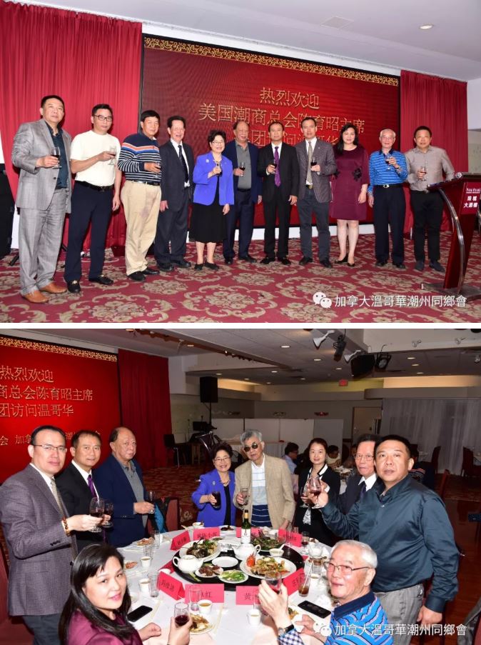 當晚,加拿大溫哥華潮州同鄉會聯合加拿大潮商會在珠城大酒樓為潮商北美洲商務訪問團一行訪溫舉行了歡迎晚宴。加拿大國會議員黃陳小萍出席了晚宴並致辭。