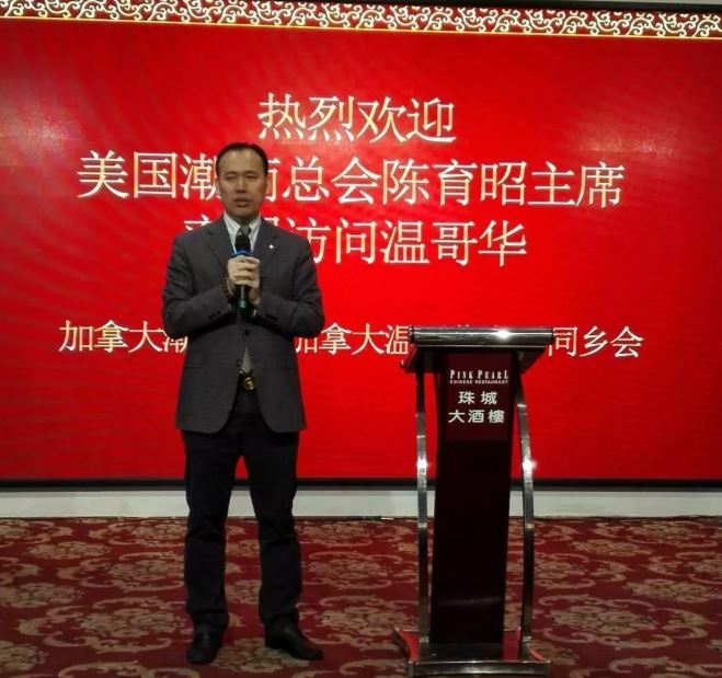 陈育昭主席感谢加拿大潮商会的盛情接待。并表示与加拿大潮商会长期有着友好的合作,希望今后能继续交流。